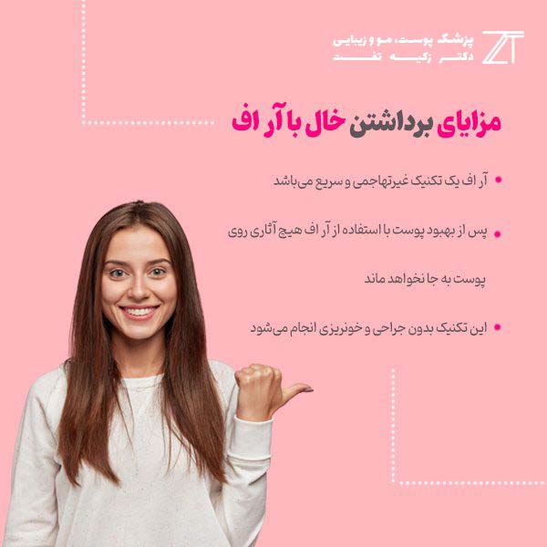 درمان موثر و مزایای برداشتن خال به روش آر اف عبارتند از:
