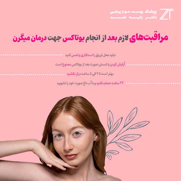 مراقبت های لازم بعد از انجام بوتاکس جزو موارد ضروری است که حتما باید آنهارا رعایت کنید تا از به وجود آمدن عوارض جانبی جلوگیری کنید.