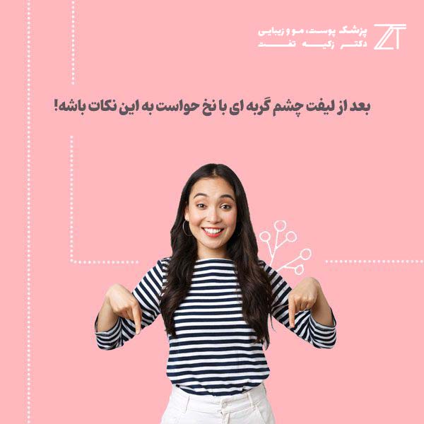 - مراقبتهاى بعد از لیفت چشم گربهاى با نخ