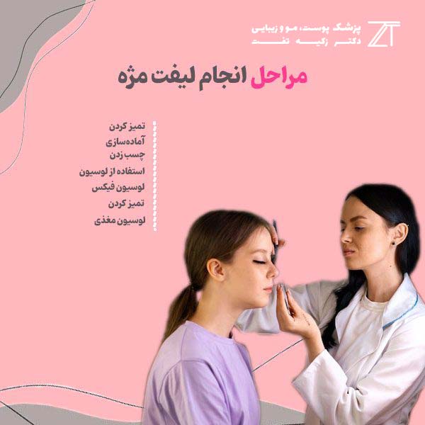 مراحل زیر برای لیفت کردن مژهها در کلینیک انجام میشود: