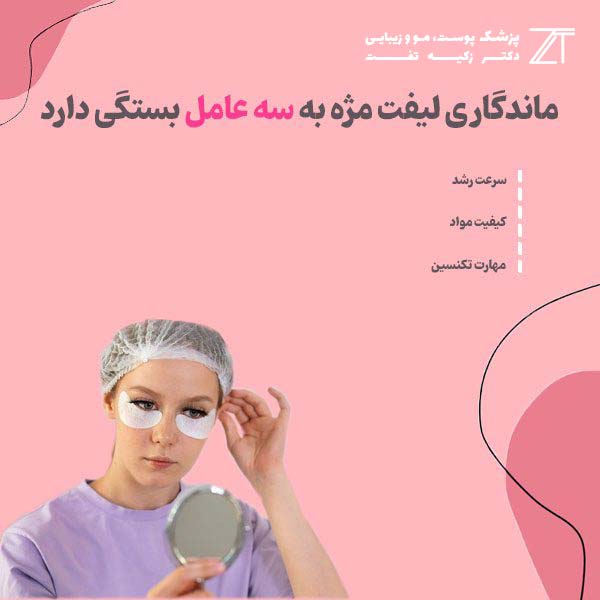 مژههای هر فرد با سرعت متفاوتی رشد میکنند، ماندگاری لیفت نیز به چرخه رشد مژهها بستگی دارد. اگر چرخه رشد مژهها سریع باشند، دوام لیفت ممکن است طولانی نباشد.