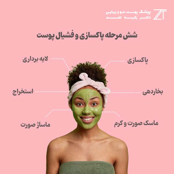 پاکسازی و فشیال پوست در شش مرحله انجام میشود.