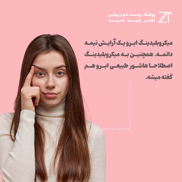 هم چنین به میکرو بلیدینگ اصطلاحا هاشور طبیعی ابرو هم گفته می شود. از آن جایی که در این روش، تاج و دم ابرو در جهت طبیعی ابرو هاشور می خورد و جاهای خالی ابرو پر می شود، برای کسانی که قصد دارند ابروهای خود را ترمیم کنند و جاهای خالی در ابروها را پر کنند و کسانی که می خواهند قوس ابروی خود را بیشتر کنند، روشی مناسب است.