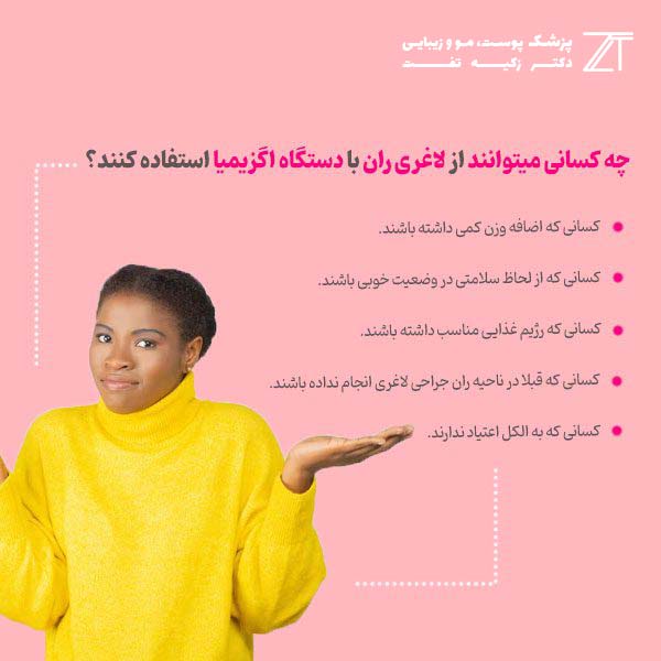 - چه کسانی میتوانند از لاغری ران با دستگاه اگزیمیا استفاده کنند؟